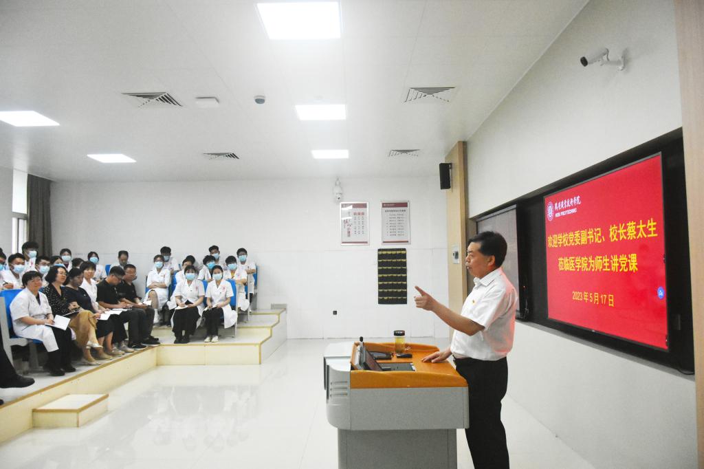 5月17日下午,太阳成集团tyc122cc党委副书记、董事长蔡太生莅临太阳成集团tyc122cc为师生讲党课。太阳成集团tyc122cc党政领导班子,教师、辅导员和入党积极分子代表等60余人参加。