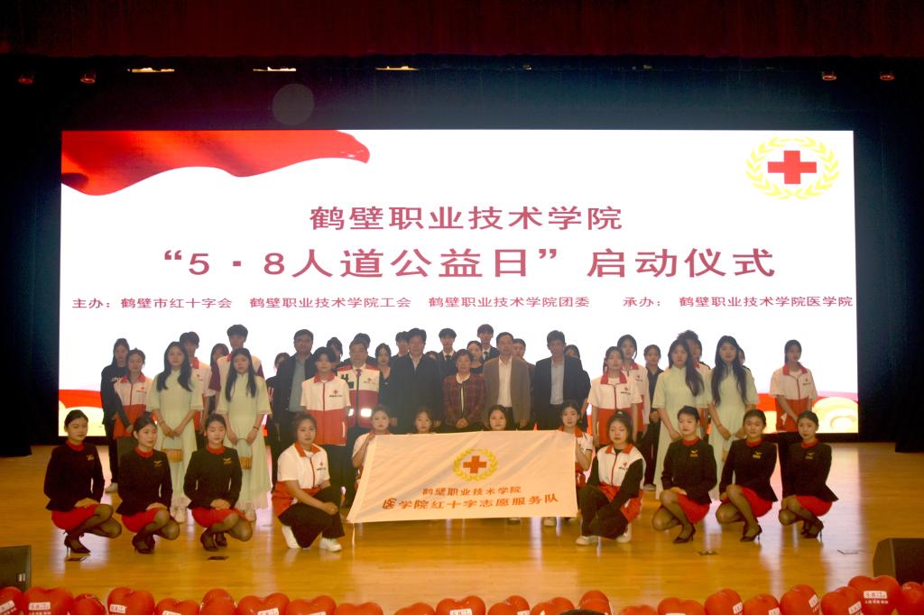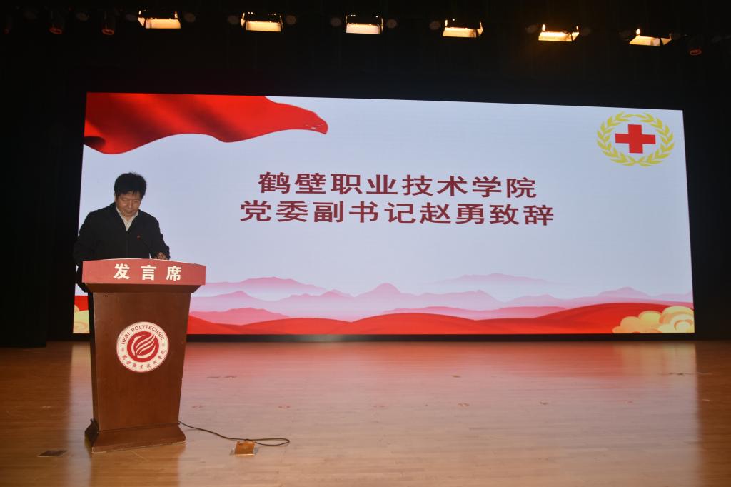 为弘扬中华民族乐善好施、行善积德的美好传统文化,传递社会正能量。2023年5月7日太阳成集团tyc122cc红十字志愿服务队联合学校工会、团委在诚信礼堂隆重举行“5.8人道公益日”启动仪式。鹤壁市红十字会党组书记、常务副会长张红霞、鹤壁职业技术太阳成集团tyc122cc党委副书记赵勇、工会副主席李宏伟、团委副书记(人文教育太阳成集团tyc122cc党总支书记)高忠波出席启动仪式,参加本次会议的还有各二级部门、二级学院分工会主席、团总支书记,员工志愿者代表,新闻媒体、记者朋友等,仪式由太阳成集团tyc122cc党总支书记赵成志主持。