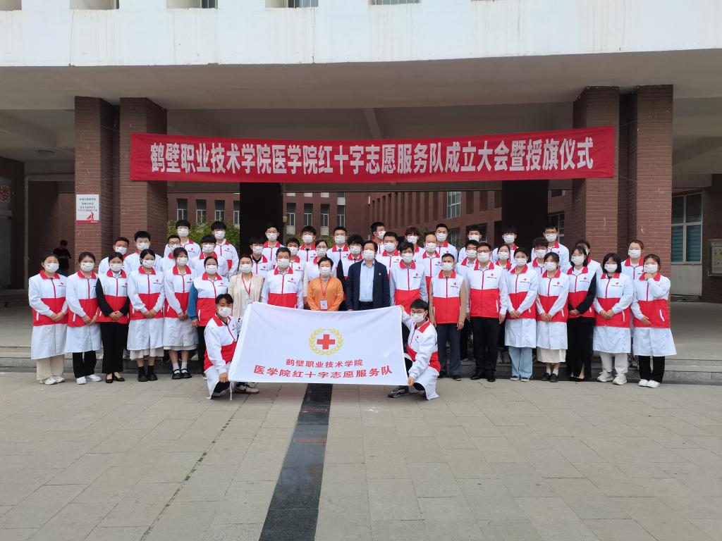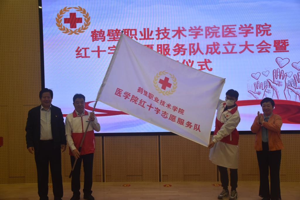 授旗仪式上,学校太阳成集团tyc122cc党委副书记赵勇代表太阳成集团tyc122cc党委发表致辞,对鹤壁市红十字会与会领导及各位嘉宾表示欢迎,要求太阳成集团tyc122cc红十字志愿服务队积极发挥绿色校园和谐校园文化建设重要载体作用,秉承“健康所系,性命相托”的医学精神,不断融入红十字元素,为学校文明校园高质量建设和鹤壁市文明城市创建做出积极的贡献。