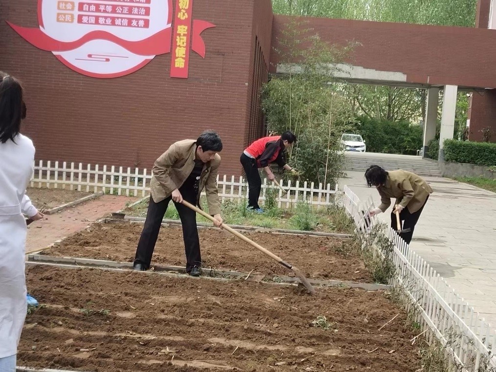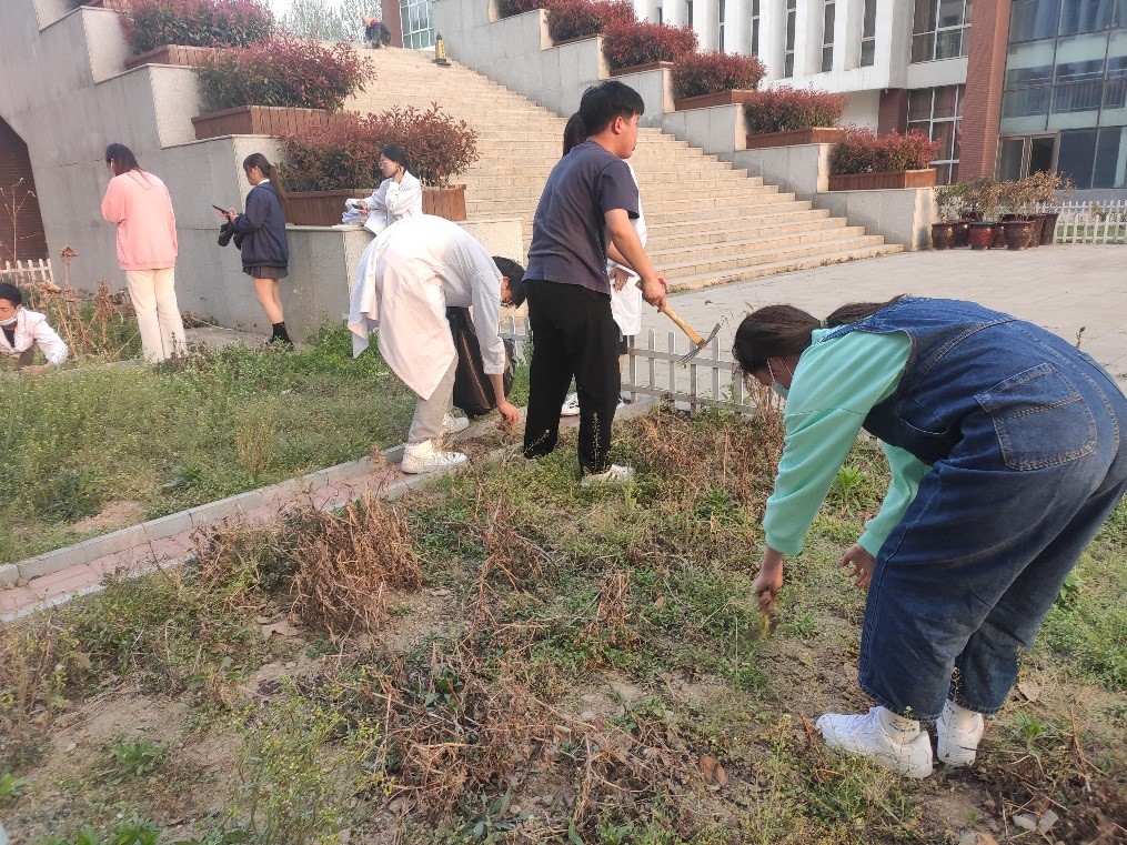 农趣园里知多少,装饰百草有妙招。大家分工协作,有的拿着铁锹、铁铲,有的直接用手拔除杂草,收拾园中废弃物、深翻土地,不怕脏、不怕累,汗水挥洒,笑声飞扬。经过近2个小时的努力,杂草全部清除干净,土地也翻耙了一遍,百草园焕然一新。