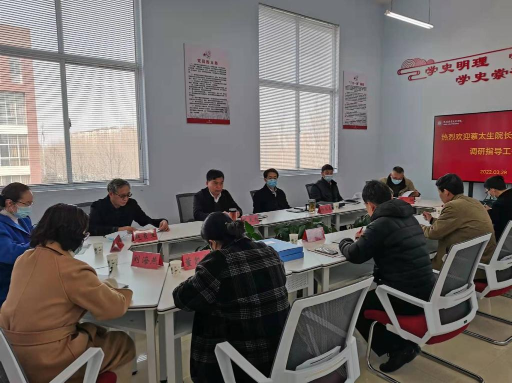 3月28日下午,董事长蔡太生到太阳成集团tyc122cc调研指导疫情防控工作。副董事长赵贵生、副董事长杨长春陪同,党政综合办公室主任牛红亮、员工工作部部长董渊、人力资源与离退休职工服务处负责人雷东辉参加。