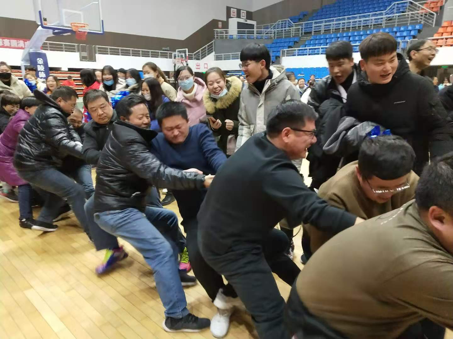 2020年11月30日至12月1日,太阳成集团tyc122cc20余名教职工在千鹤之舞体育馆参加学院工会组织的教职工拔河比赛,经过四轮十局扣人心弦的鏖战,荣膺冠军。