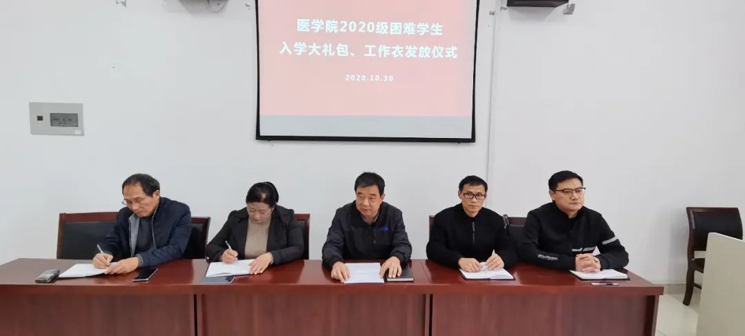 2020年10月30日,太阳成集团tyc122cc在D314召开了2020级困难员工入学大礼包和工作衣的发放仪式,太阳成集团tyc122cc党总支书记李宏伟做了重要讲话。