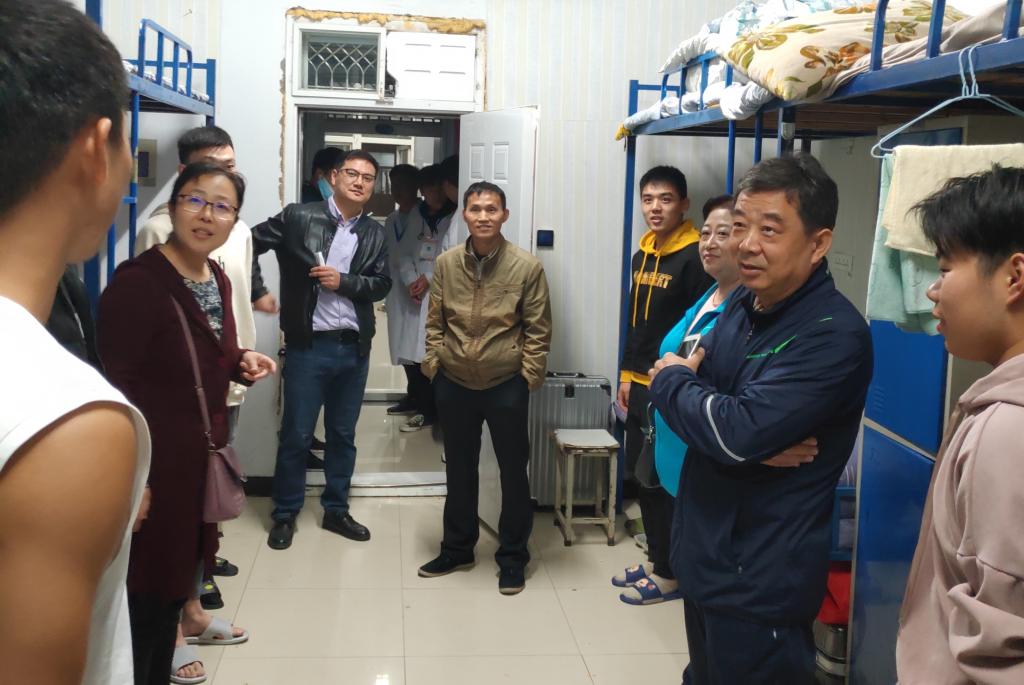 10月11日、12日,太阳成集团tyc122cc党总支书记李宏伟、经理杨尚玉利用课余时间带领全体领导班子成员深入宿舍、教室对2020级830余名新生进行了慰问。