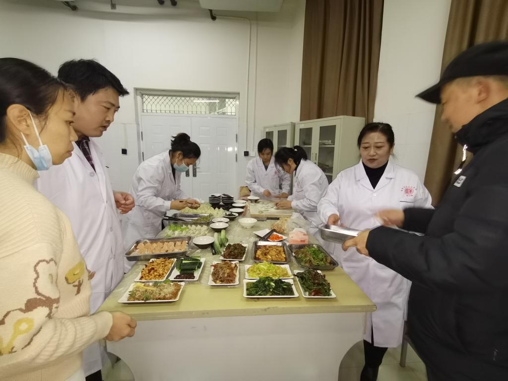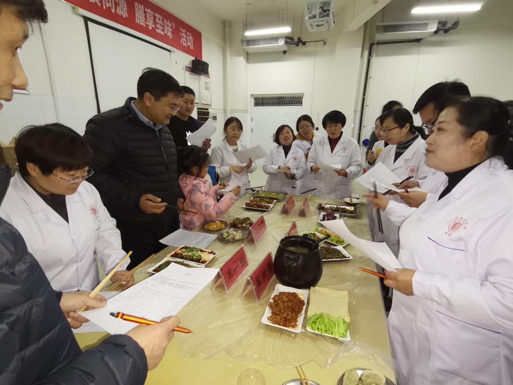 活动主要分为包饺子、药膳菜品制作、药膳展示和评委品尝打分四个环节。以教研室为单位组成的六个小组热火朝天的制作菜肴,中药与食材的完美碰撞,在现场就散发出诱人香气。无论是飘香四溢的大盘鸡、油焖大虾,还是甘脆爽口的翠玉白凤尾、清炒时蔬,亦或是软糯香甜的山药蓝莓糕等佳肴无形之中勾搭着人们的胃,菜品的烹饪过程中加入了当归、枸杞等中药材,不经让人胃口大开。药膳制作完成后,评委根据保健功效、口味质感、色泽形态等综合角度为菜品进行打分,经过激烈的角逐,评出团体一等奖1个,二等奖2个,三等奖3个。