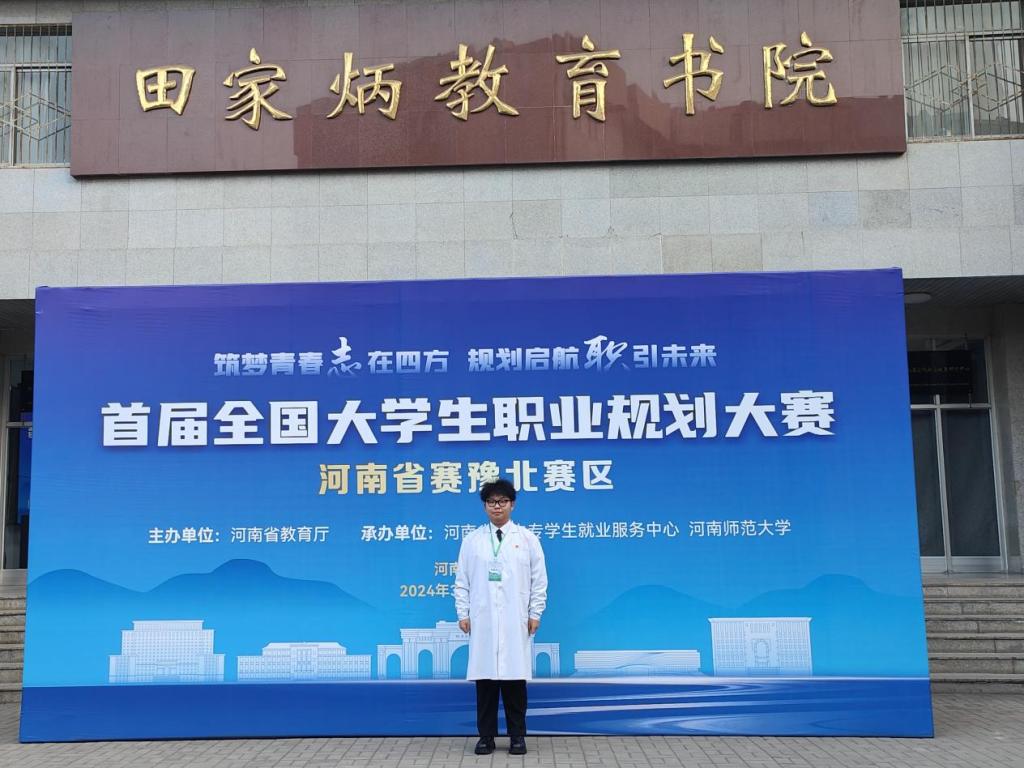 3月2日,由省教育厅主办的首届全国老员工职业规划大赛河南省赛豫北赛区在河南师范大学举行,太阳成集团tyc122cc蒋昊成同学代表学校参加省赛成长赛道的决赛。