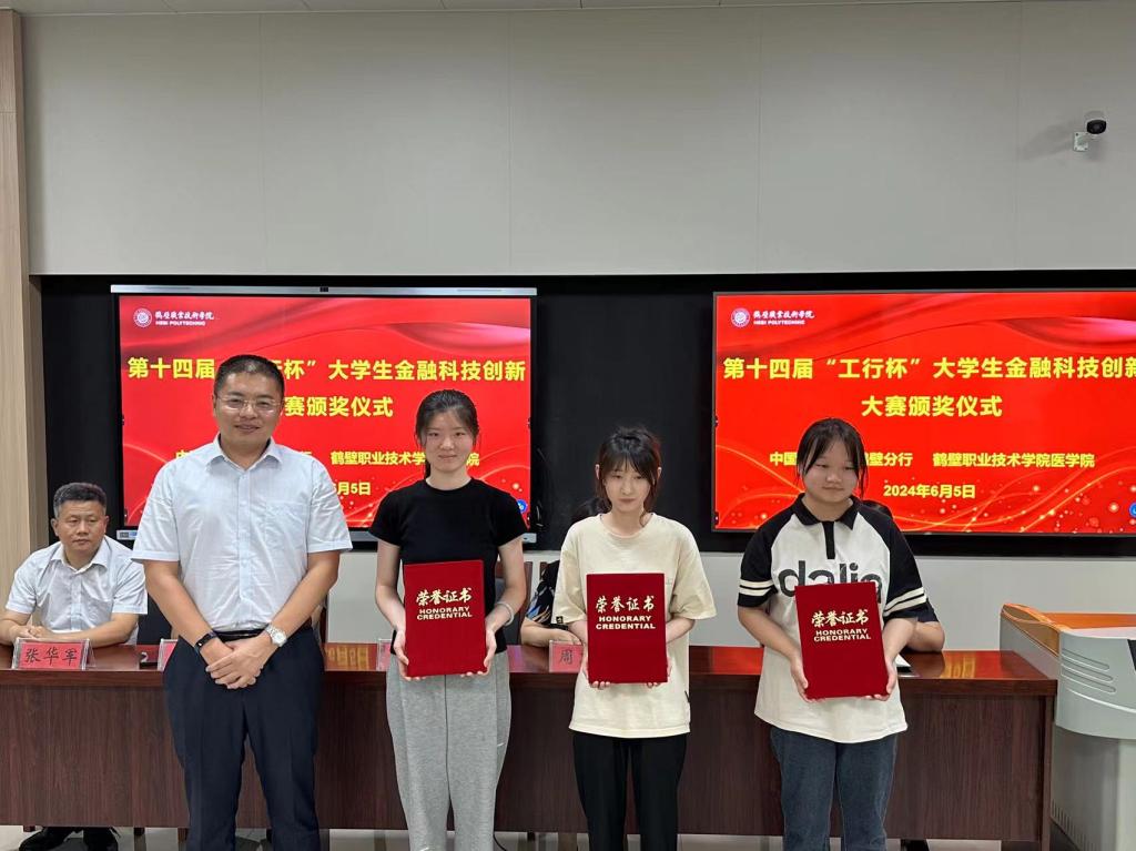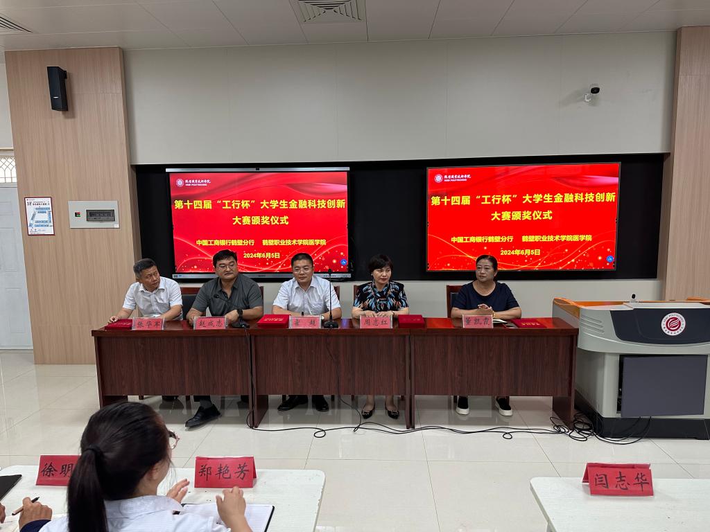 6月5日下午,由中国工商银行主办的第十四届“工行杯”全国老员工金融科技创新大赛河南赛区(鹤壁分赛区)颁奖仪式在太阳成集团tyc122ccD316会议室隆重举行,中国工商银行鹤壁分行副行长霍超、学校创新创业太阳成集团tyc122cc党总支书记周志红、太阳成集团tyc122cc党政领导班子及获奖师生出席颁奖仪式,仪式由太阳成集团tyc122cc党总支书记赵成志主持。