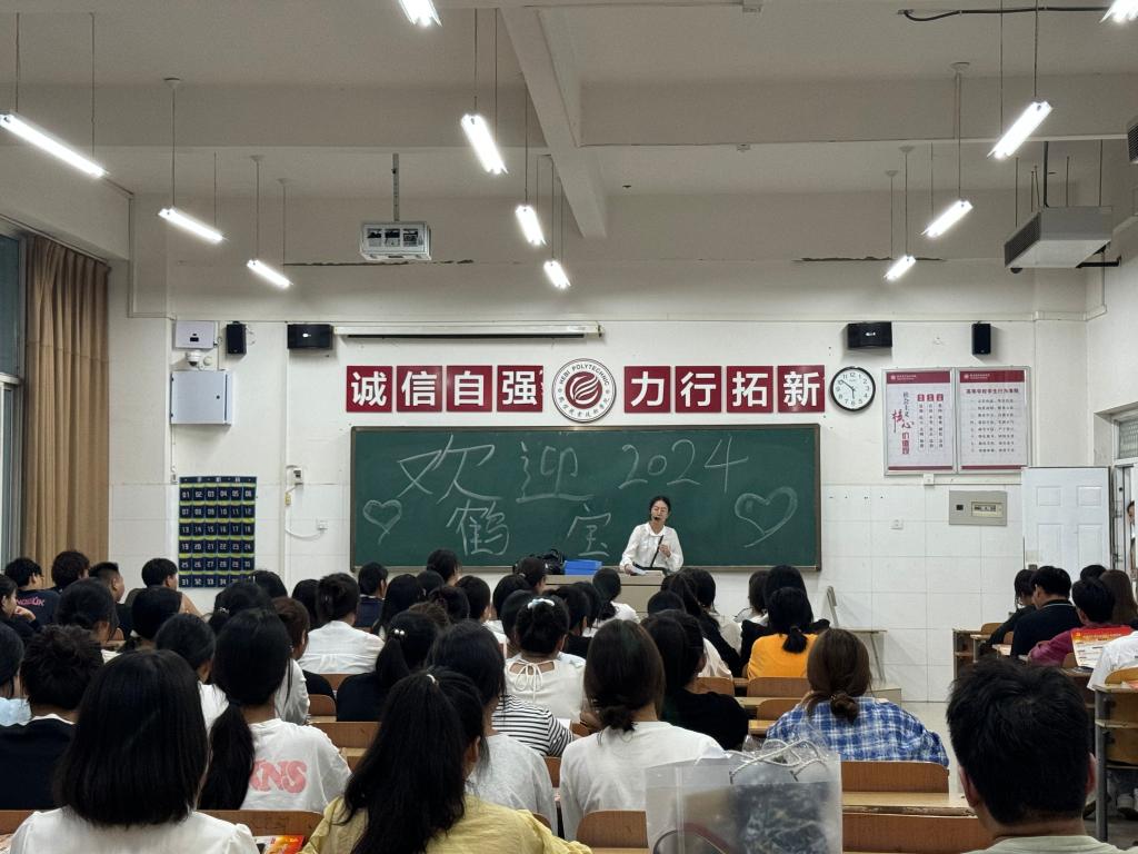 在“开学第一课”上,赵书记首先对新生的到来表示热烈的欢迎,并满怀深情地对新生提出四点希望:一是厚植家国情怀、立志报效祖国。同学们要坚定理想信念,树立远大目标,立志成人成才,努力拼搏,将鹤职作为梦想起航的地方,保持昂扬激情的斗志,矢志不移向着新的目标奋勇向前,为国家医学事业发展贡献力量。二是努力学习知识、提高综合素质。现阶段是一个新的开始,无论过去,成绩优异还是有待提高,现在大家都站在了同一起跑线上。同学们要坚持求真笃学,增长学识,不负青春韶华,要珍惜机会,努力提高自己的技能水平。三是加强体育锻炼、保持身心健康。同学们要坚持体育锻炼,强身健体,增强身体素质,增加免疫力,提高学习效率和记忆力,保持健康的心理状态,为自己的美好生活夯实身体素质。四是注重团结同学、友谊地久天长。同学们要融洽相处,互帮互助,相互扶持,团结包容,积极参加各类社团和志愿者服务活动,丰富自己的校园生活。