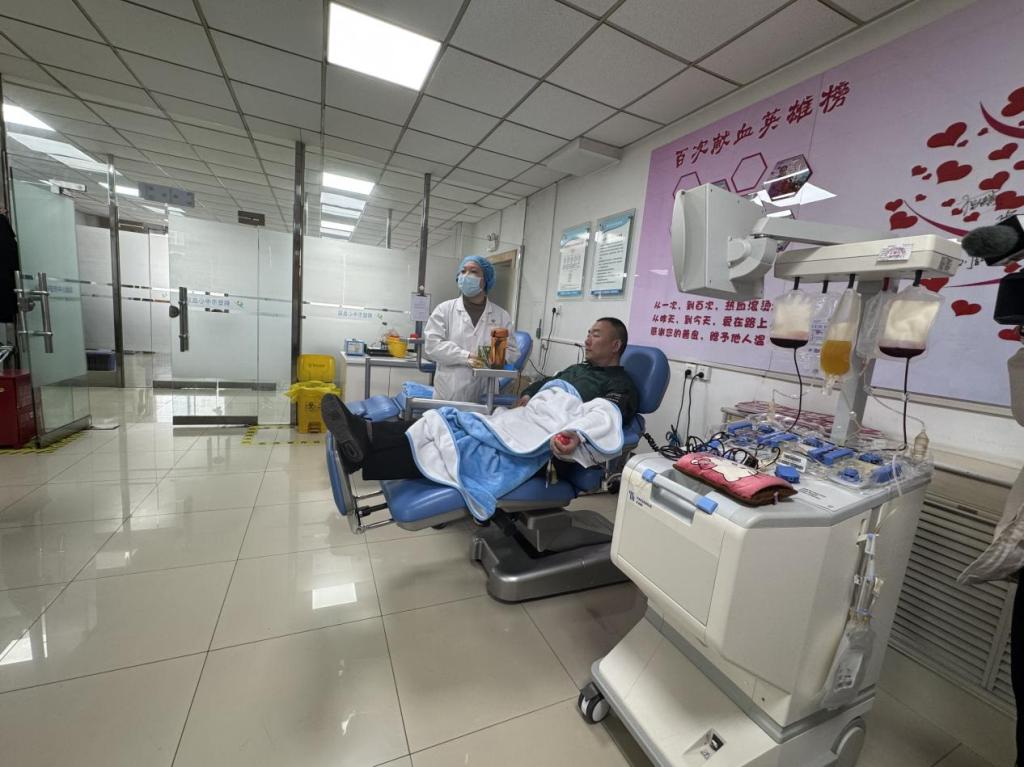 在见习过程中,同学们有幸遇到了鹤壁市百次献血英雄冯艳昌,他分享了自己多年坚持献血的初心与经历,百次献血的事迹深深感染了在场的每一位同学,激发了同学们对无偿献血公益事业的热爱和尊重。