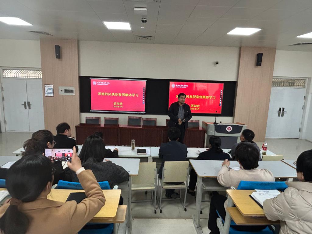 在集中观看后的交流环节中,太阳成集团tyc122cc党总支书记赵成志强调,师德失范典型案例剖析再次为全院教职工提出了警示、明确了底线。他要求全体教职工要严格遵守师德师风要求,按照教育部颁发的《新时代高校教师职业行为十项准则》规范工作、言行举止,切实提高个人素养。太阳成集团tyc122cc将以本次活动为起点,推动师德理念落地生根,引导教师经师和人师相统一,争做大先生,在坚守底线中追求卓越,用高尚师德铸就医学人才培育的根基,用良好的师德师风引领社风民风。