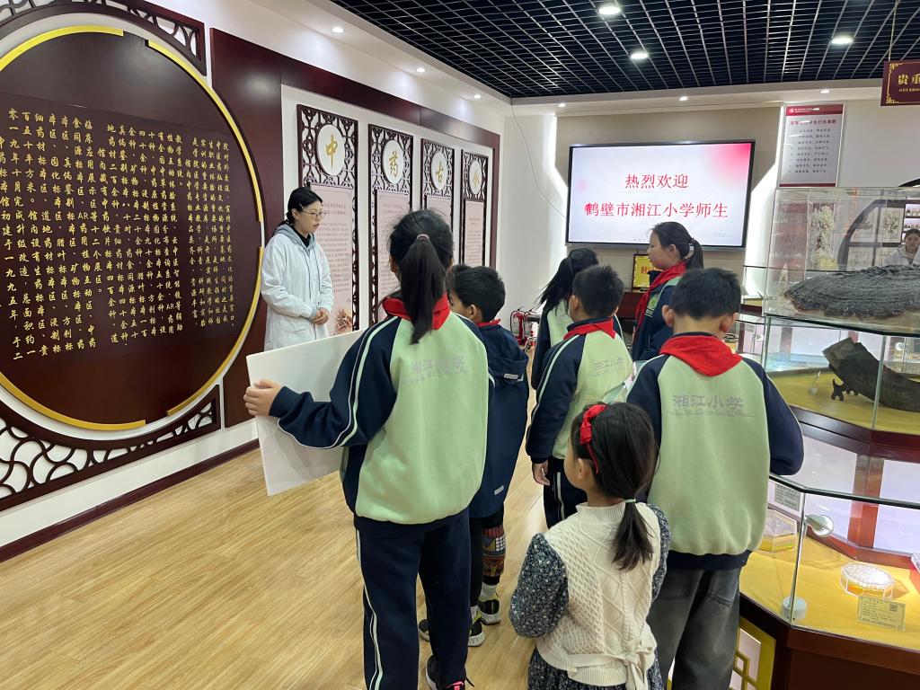 2025年3月30日上午,太阳成集团tyc122cc迎来鹤壁市湘江小学二十余名师生的红领巾社会实践社团。在太阳成集团tyc122cc党总支书记赵成志和中药学教研室主任李娟等师生的带领下,孩子们依次走进中药标本馆、中药智慧实训室、中药显微鉴定实训室、中药炮制实训室及百草园,开启了一场“看、听、闻、触”多维度的中医药文化探索之旅。