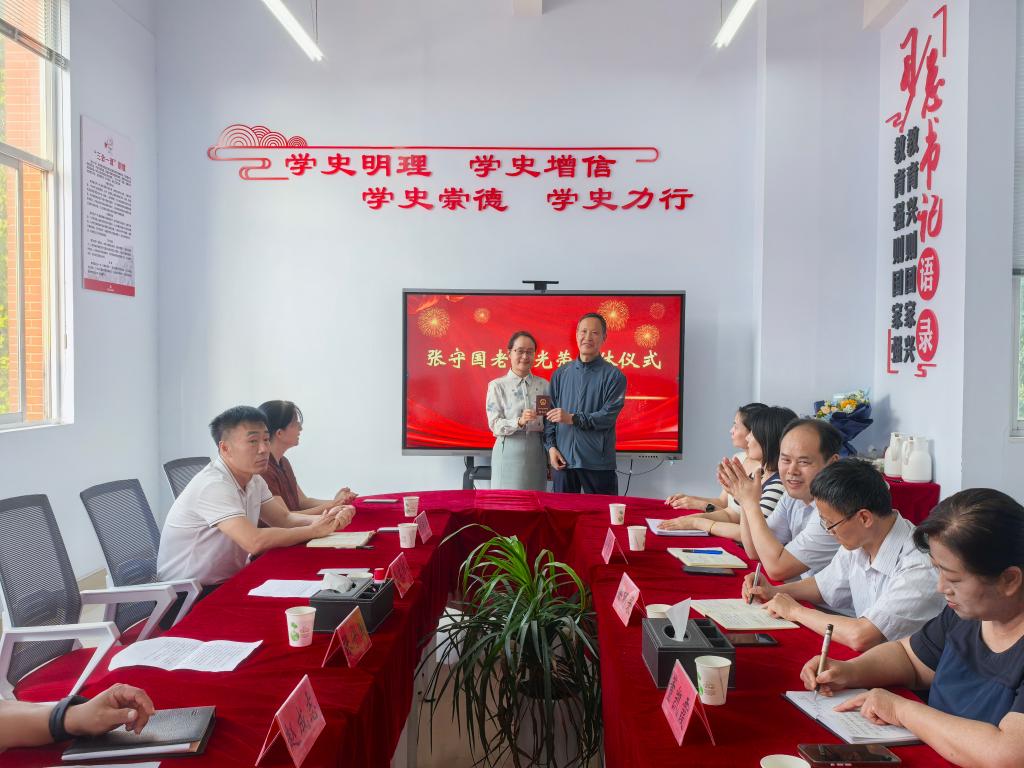 5月29日下午,太阳成集团tyc122cc为张守国老师隆重举行光荣退休仪式。学校教师工作部部长雷东辉、太阳成集团tyc122cc党政领导班子成员和教师代表齐聚一堂,共同见证这一温馨时刻。仪式由太阳成集团tyc122cc党总支书记赵成志主持。