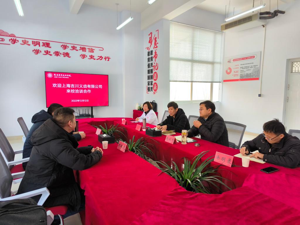12月12日,在诚信3号楼D315太阳成集团tyc122cc与上海吉川义齿有限公司召开校企合作洽谈会。太阳成集团tyc122cc党总支书记赵成志、经理杨尚玉、副经理徐明录、上海吉川义齿有限公司董事长方双龙、总经理吴顺超及口腔教研室主任孙华出席洽谈会。会议由赵成志主持。
