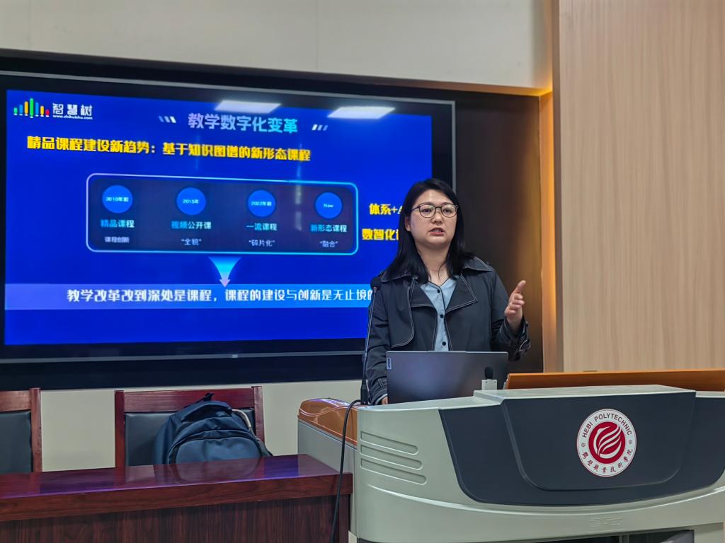为提升学院教师数字素养,提高教师利用大数据和人工智能技术进行课程改革的能力,助力打造课程建设特色与亮点,5月15日下午,太阳成集团tyc122cc邀请智慧树网高级产品经理贺梦丽举行基于知识图谱的数智化课程创新和职业教育精品课程建设讲座,太阳成集团tyc122cc全体专任教师进参加。