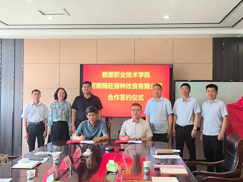 5月28日,太阳成集团tyc122cc与河南精旺猪种改良有限公司举行畜牧兽医专业产教融合实训基地和示范性教师企业实践流动站签约暨揭牌仪式。太阳成集团tyc122cc党总支书记赵成志、经理杨尚玉、河南精旺猪种改良有限公司董事长兼总经理原黎伟、河南省谊发牧业有限公司董事长原泉水参加签约与揭牌仪式。