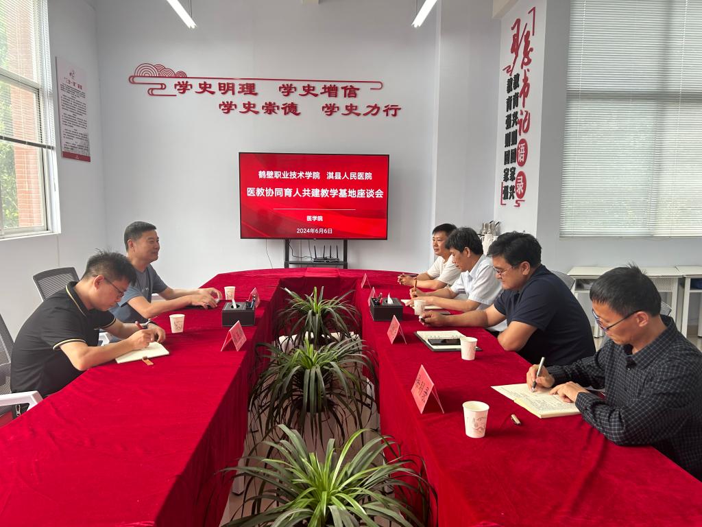 为促进太阳成集团tyc122cc医教协同育人发展,院校合作共建教学实训基地,6月6日下午,太阳成集团tyc122cc与淇县人民医院在海棠园校区诚信3号楼D315举行医教协同育人共建教学基地座谈会。太阳成集团tyc122cc党总支书记赵成志、经理杨尚玉,淇县人民医院副经理邢振波、医务科科长侯玉辉等相关领导参加。