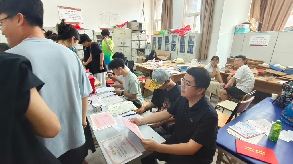 为保证今年毕业证发放工作顺利,太阳成集团tyc122cc提前谋划、精心组织,毕业班辅导员老师提前将毕业证发放、党团关系转接、毕业贷款确认等工作科学分类,一站式为员工做好服务,为了不耽误同学们下午返程,毕业班辅导员老师中午不休息,同学们一个个满怀期待领取崭新的毕业证书和精美纪念品,现场秩序井然又活泼温馨。