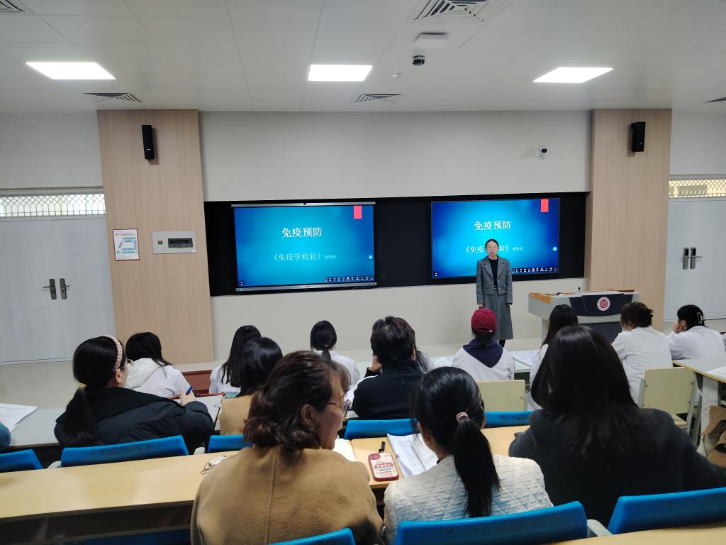 汇报课上,范衡老师以“大叶性肺炎”为题,教学实例引入课堂教学,运用图例讲述了大叶性肺炎的临床表现、病理分期、影像学表现及诊断鉴别,内容环环相扣谢然佳老师以“免疫预防”为题,利用学习通精心讲解人工主动免疫与人工被动免疫的区别,内容充实,讲解生动;张华平老师以“细胞膜跨膜物质转运”为题,通过动画及视频详细讲解了物质转运的方式、单纯扩散易化扩散和主动运输的概念及类型,教学深入浅出;刘帅老师以“中药丸剂制备”为题,讲解丸剂的制备工艺流程及注意事项,教学环节完整,以希沃游戏检验员工学习的成果,激发员工的学习兴趣。4名教师汇报课准备充分、特色鲜明,教学设计和教学实施完整,展示了青年教师风采。
