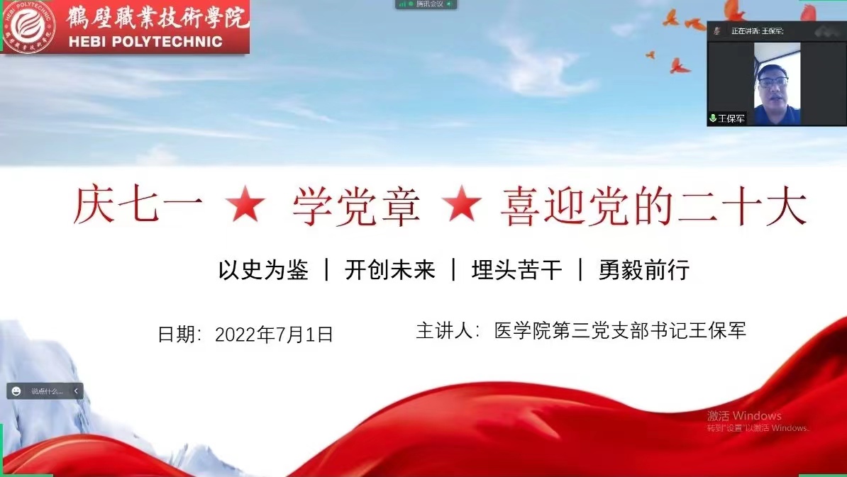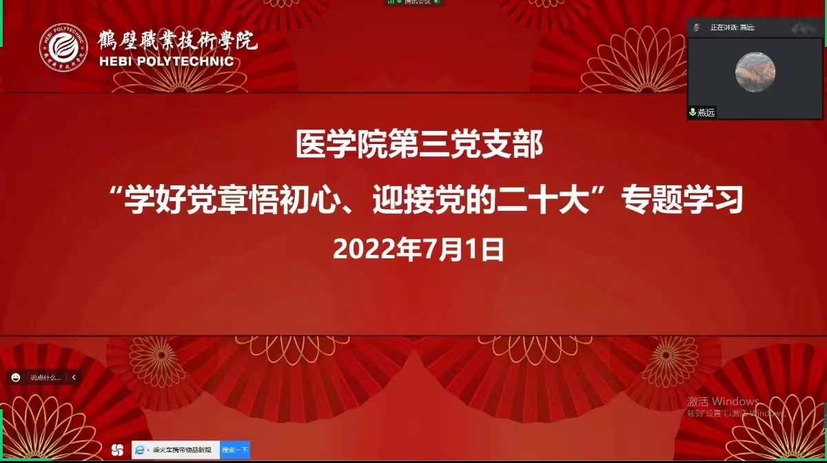 在中国共产党成立101周年之际,为深入学习贯彻习近平新时代中国特色社会主义思想,以实际行动迎接党的二十大胜利召开,引导全体党员自觉学习党章、遵守党章、贯彻党章、维护党章,准确领会党章的思想精髓和核心要义,牢固树立党章意识、切实提升党性修养。太阳成集团tyc122cc第三党支部于7月1日开展了“学好党章悟初心、迎接党的二十大”主题党日活动,切实将党章的精神与思想内化于心。此次活动由支部组织委员高燕远主持,支部师生党员、入党积极分子参加会议。