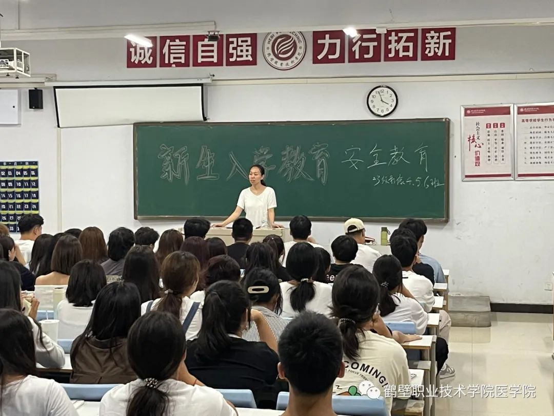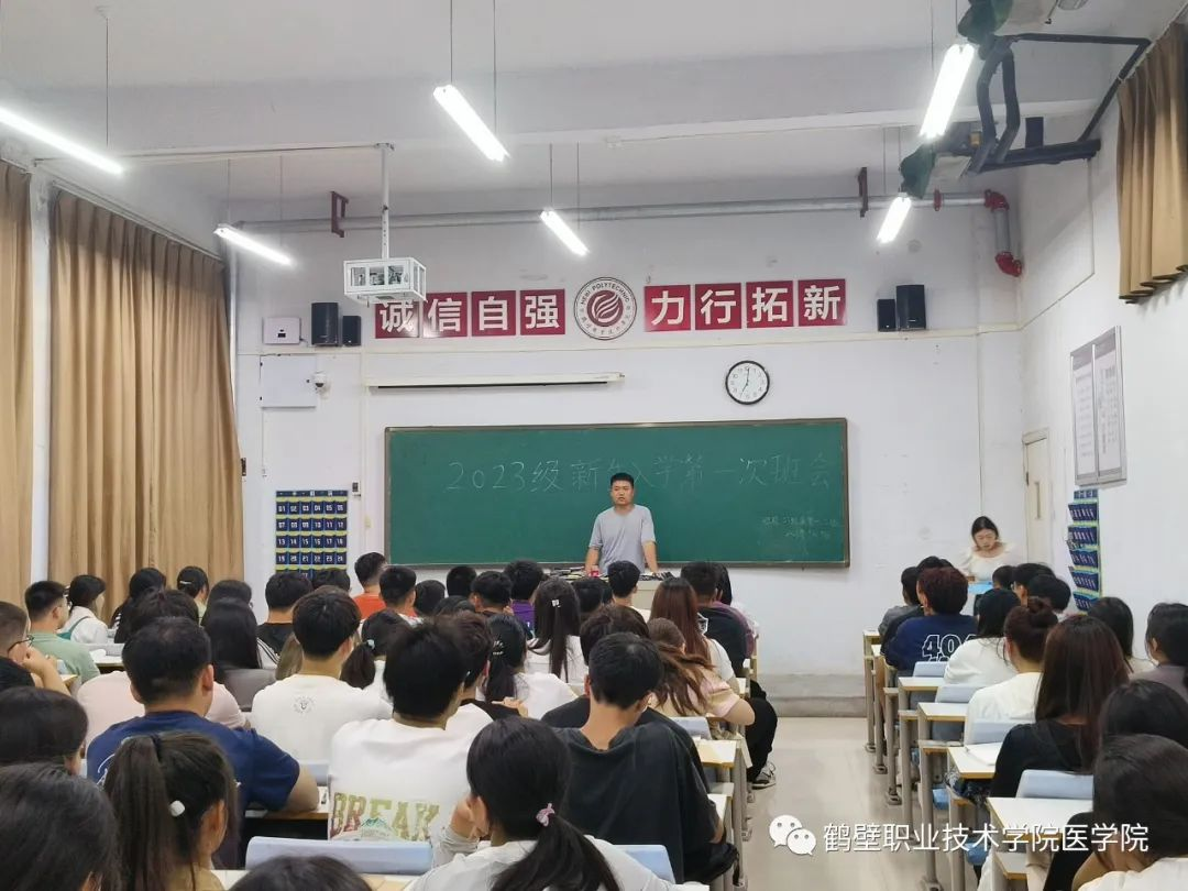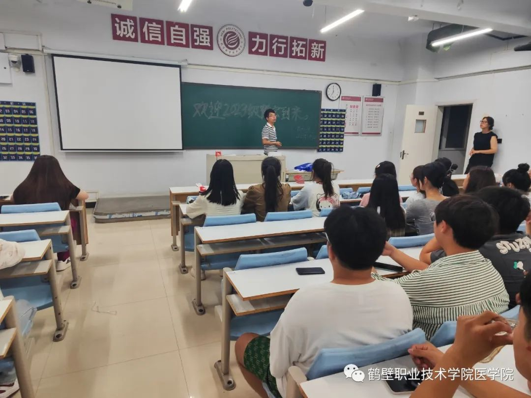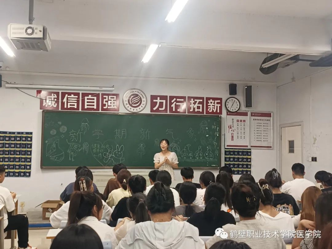 在“开学第一课”上,赵书记首先对新生的到来表示热烈的欢迎,并满怀深情地对新生提出四点希望:一是厚植家国情怀、立志报效祖国。同学们要坚定理想信念,树立远大目标,立志成人成才,努力拼搏,将鹤职作为梦想起航的地方,保持昂扬激情的斗志,矢志不移向着新的目标奋勇向前,为国家医学事业发展贡献力量。二是努力学习知识、提高综合素质。同学们要坚持求真笃学,增长学识,不负青春韶华,要珍惜机会,努力提高自己的技能水平。三是加强体育锻炼、保持身心健康。同学们要坚持体育锻炼,强身健体,增强身体素质,增加免疫力,提高学习效率和记忆力,保持健康的心理状态。四是注重团结同学、友谊地久天长。同学们要融洽相处,互帮互助,相互扶持,团结包容,积极参加各类社团和志愿者服务活动,丰富自己的校园生活。