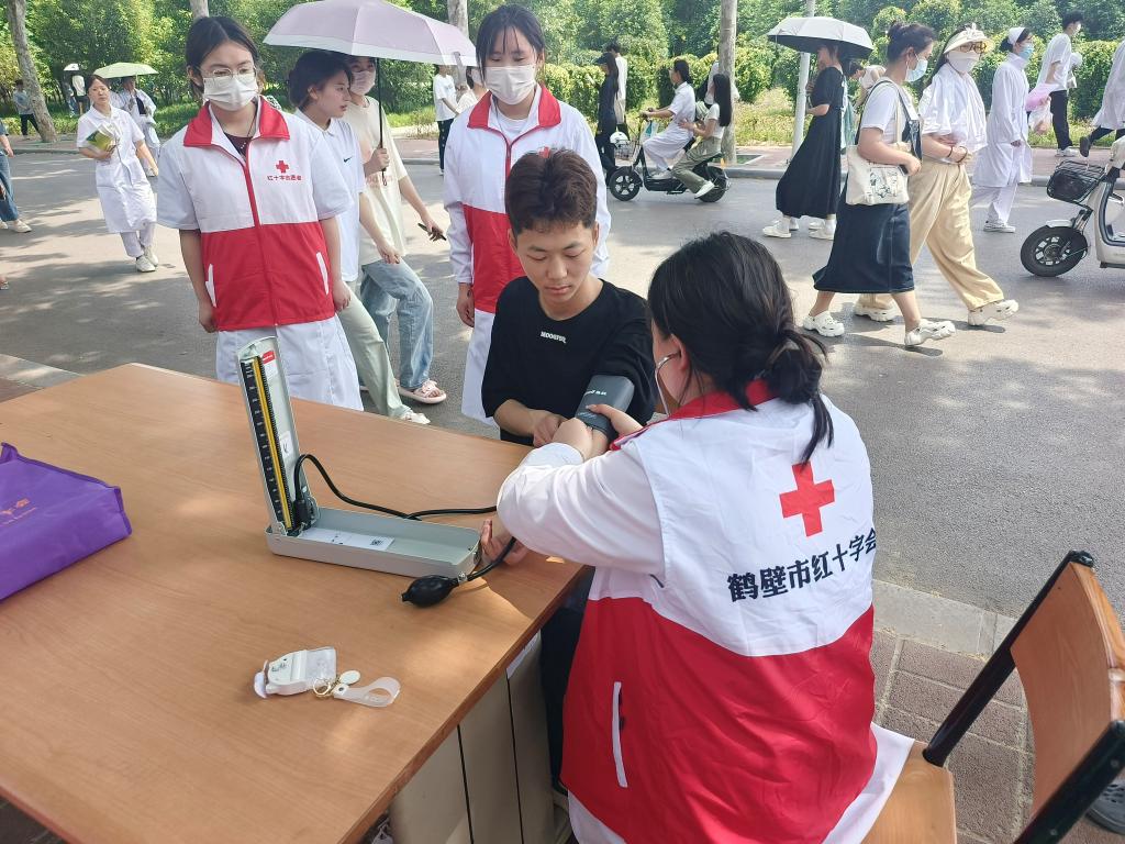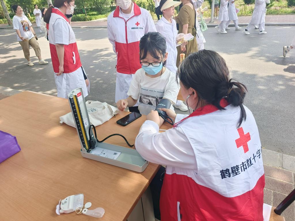 2023年5月16日,太阳成集团tyc122cc红十字志愿服务队开展 “博爱校园行,奉献医者心”爱心活动。本次活动期间,志愿者们在海棠园3号公寓楼下设置健康服务点,为师生免费测量血压并且积极宣传高血压的相关预防知识,测量血压有利于帮助大家了解自己身体的基础状况,及早排查身体隐患,保持身体健康,更好的投入到学习生活中去。此次活动给师生提供了免费测量血压的机会也提高了太阳成集团全体师生对高血压疾病的知晓率,在太阳成集团tyc122cc红十字志愿服务队的志愿者们的积极参与下,本次活动取得了圆满的成功!
