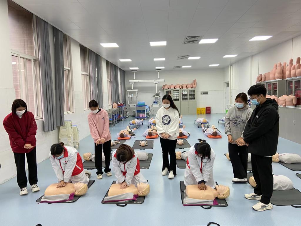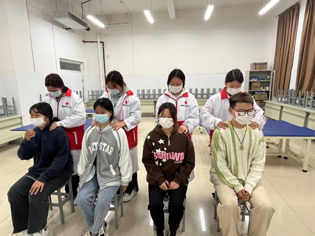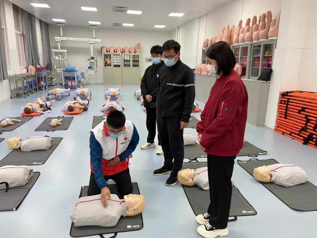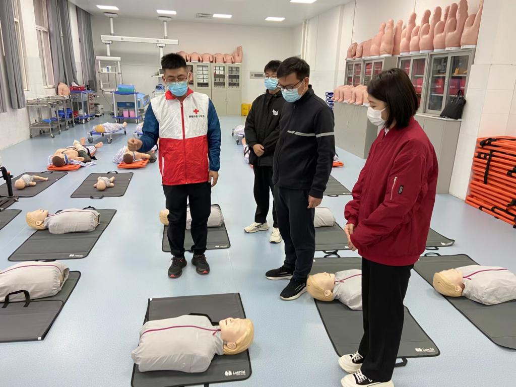 本次志愿服务活动共开展三个板块。一是在南北校区中间设置血压测量、体温检测点。现场为师生免费测量血压、体温,并利用医学专业知识现场普及宣传防疫健康知识;二是在海棠园1号公寓组织员工有序开展核酸检测工作,保持人际1米以上距离,提前扫描场所码,有序排队,勿拥挤。同时提醒员工,天气寒冷,检测排队时间可能较长,一定做好个人防寒保暖。三是开展初级救护知识技能、康复医疗保健普及活动,打造特色应急组织。作为当代老员工,学习并掌握一定的急救知识技能显得尤为重要,为此我们专门邀请护理学院宋涛老师为红十字队员和广老员工开展急救技能培训,通过培训让更多的同学掌握急救基本技能,提升员工自救互救意识和能力,促进广老员工健康成长。