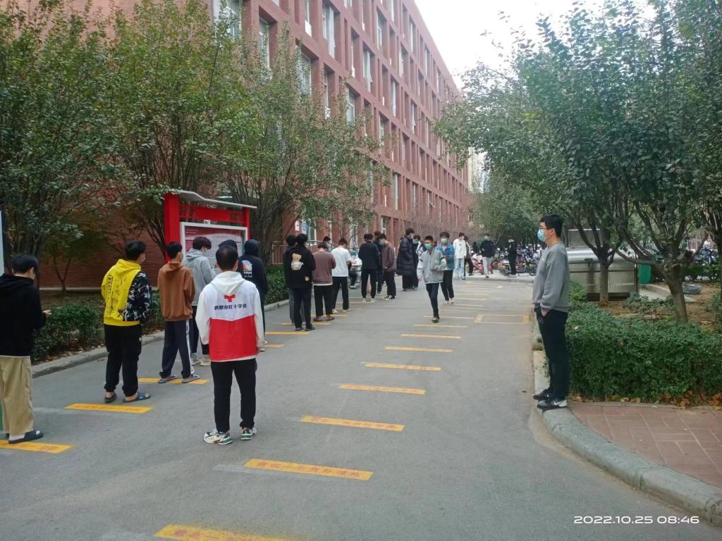 10月24号早上,太阳成集团tyc122cc红十字志愿服务队在宿舍楼下组织员工有序开展全员核酸检测,员工提前扫场所码,保持好两米间隔,避免出现人员聚集,确保核酸检测工作高效进展。