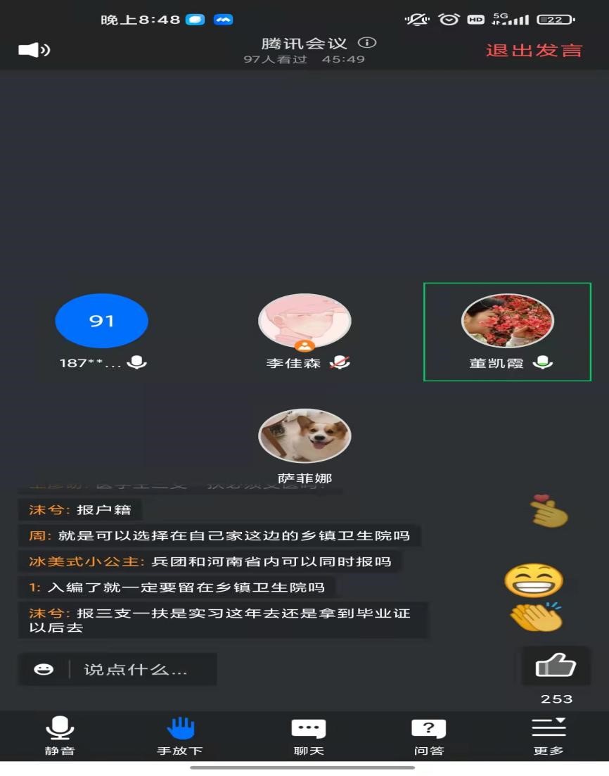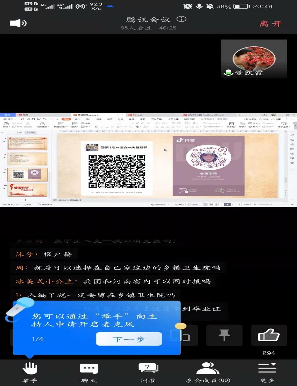 4月29日晚上8点,“三支一扶”线上答疑会议正式开始。首先,李佳森给大家介绍了“三支一扶”的报名方式和时间,在岗服务的政策。强调对于太阳成集团tyc122cc的员工,报名时选着支医是最合适的选着,该专项主要在西部地区贫困县的乡镇卫生院以及部分县级医院、防疫站从事1-2年的医疗卫生工作。然后,会议进行了问答互动,对于员工关心的报名问题、备考问题和待遇问题,李佳森同学均进行了耐心细致的解答。最后,太阳成集团tyc122cc副书记董凯霞和辅导员高燕远进行了会议总结。董老师语重心长的说,现在就业形势依旧严峻,员工资源在员工就业方面起着关键的作用,员工们从事“三支一扶”,正是践行了国家所鼓励的“到西部,到基层,到祖国最需要的地方去”。同时,员工应该放低就业心态,持有“先就业,再择业”的就业观念。高老师补充到,在做这种重大决定时,要遵从自己的内心,征询父母的同意,也可以咨询下自己的辅导员。如果打算从事“三支一扶”,需要全身心的去备考,有了目标并付出行动才能取得成功,若只有目标而不采取行动就会一事无成。会议即将结束时,建立了“三支一扶”答疑群,以方便后期更好的为在校生答疑解惑。