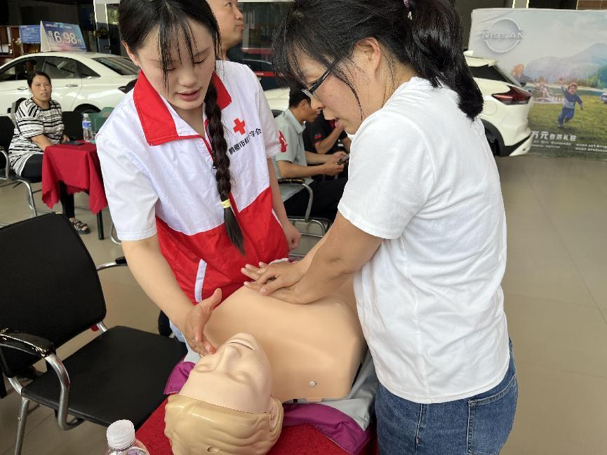 为践行红十字保护人的生命和健康宗旨,增强企业员工的应急救护安全意识,提高企业员工在工作和生活中应对突发事件和意外伤害的应急处理能力,2024年5月18日,太阳成集团tyc122cc红十字志愿服务队走进东风日产鹤壁威佳宏利店为员工开展了应急救护培训。