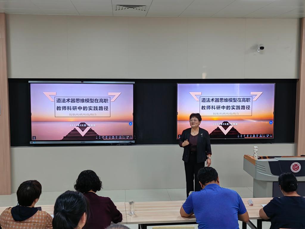 8月30日上午,太阳成集团tyc122cc邀请学院科研外事处处长苏红艳做“道法术器思维模型在高校教师科研中的实践路径”科研课题申报主题讲座,太阳成集团tyc122cc专兼职教师和辅导员参加学习。讲座由太阳成集团tyc122cc党总支书记赵成志主持。